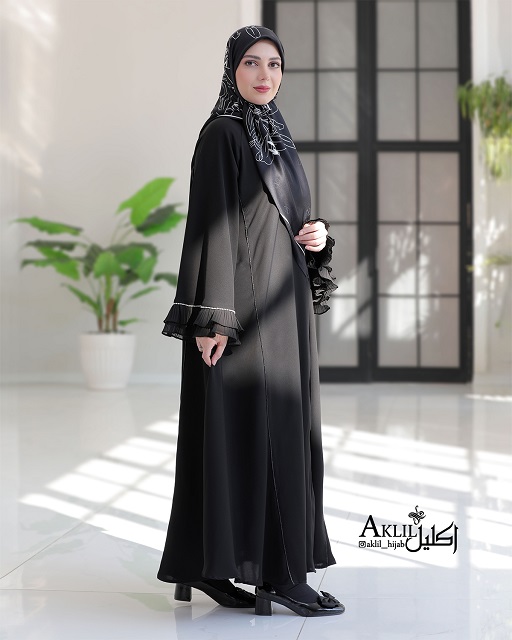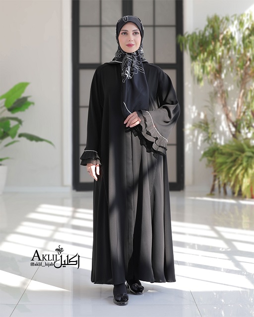 از جلو تا پایین عبا دکمه مخفی به صورت قابلمه دوخته شده و حلقه آستین رگلان کار شده است.
